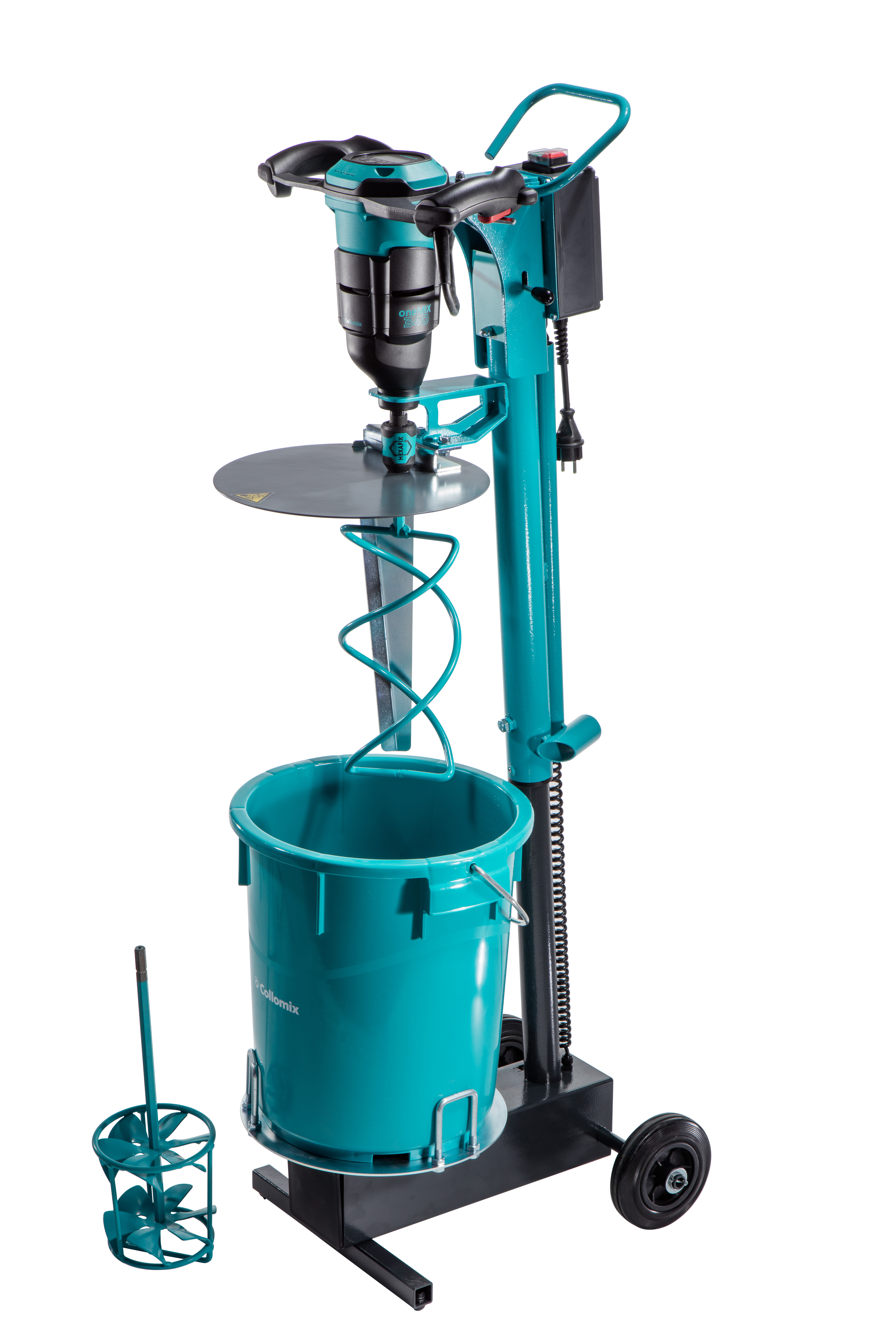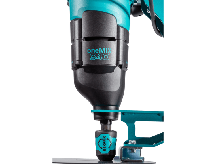 Kraftig og brukervennlig blandemaskin for effektiv håndtering av én sekk med materialer. Onemix 340 er en komplett løsning med 3 hastigheter (400 / 550 / 750 o/min), innebygd timer, og fjærbelastet teleskopisk svingarm for enkel håndtering.